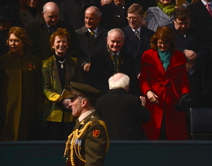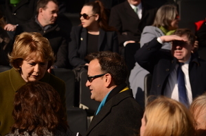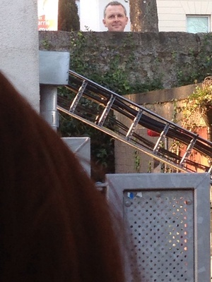 Richard Boyd Barrett creeping an eye on early morning commuters in Dun Laoghaire.