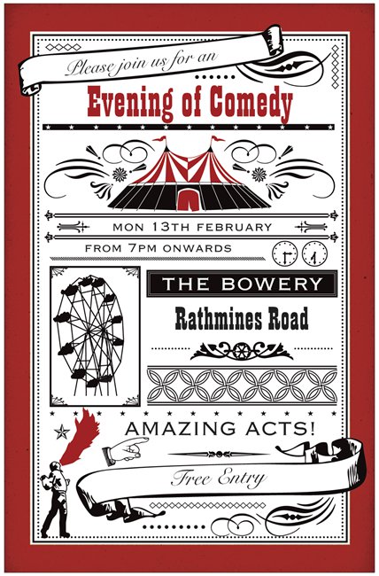 Above is a flyer for our debut comedy night in The new Bowery venue 196 Lower Rathmines Road, Rathmines, Dublin 6….Acts include John Colleary, Ruth O’Kelly Hunter, Pauline Shanhan and James Moran. It’s in collaboration with Abner Browns. Free in tonight... We are testing it out!