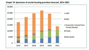 The Department of Housing says a total of 465 social housing units were built in 2015, comprising 64 units built by local authorities and 401 by private sector housing associations (the likes of Cluid and Tuath).