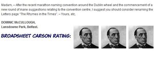 So you thought the National Conference Centre would induce another Carsonfest on the Irish Times letters page?
