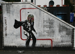 Banksy may or may not be responsible for the above unholy love-child of Boba Fett and Dirty Harry, which can be seen in his home town of Bristol.