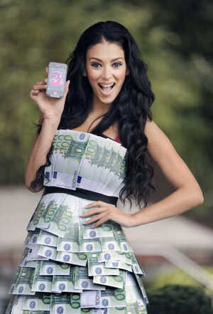 That’s why they dressed her in a frock made of €100 bills.