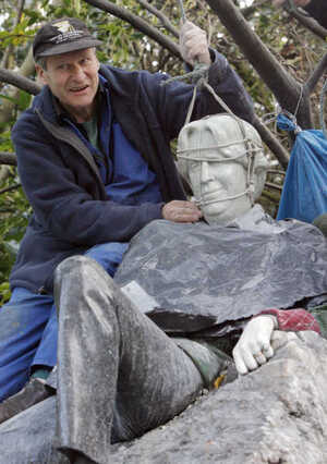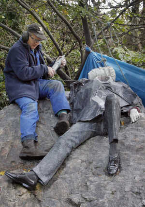 Sculptor Danny Osborne returns Oscar Wilde’s head to his body, in the north-east corner of Merrion Square, after a thorough cleaning. Danny’s statue is 13-years-old this year and still one of only a few tributes to Oscar Wilde in Ireland.