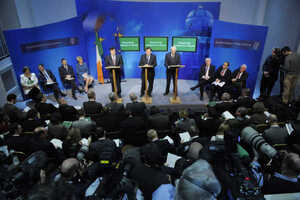 Members Of The One Minority Spared From Cuts Meet The International Press Aaron McAllorum at 3:30 pm November 24, 2010 No reduction in TD/Minister/Taoiseach’s salaries. (Photocall Ireland) FacebookTwitterPinterestSponsored Link