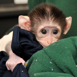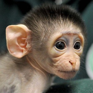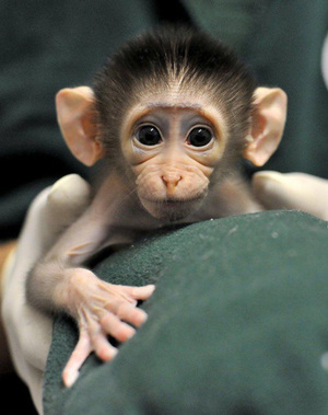 A male White-Collared Mangabey monkey, born last month at Rome’s Bioparco Zoo.