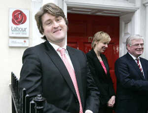 Fresh new Labour candidate Michael McNamara sports a boyishly-tousled ‘do’ as he is introduced to the press.