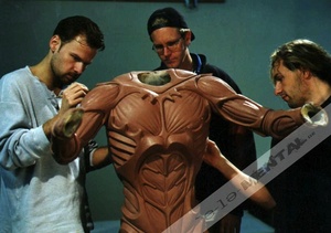 This is the weird neon mylar Superman suit that Nic Cage would have worn in Tim Burton’s Superman reboot Superman Lives, axed during the 90s in favour of Superman Returns. The above video of the thing in action has just debuted on the internets.