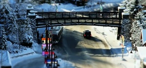 The video has been digitally tilt-shifted to simulate a shallow depth of field – creating the impression of a miniaturised ‘snow-globe’ scene.