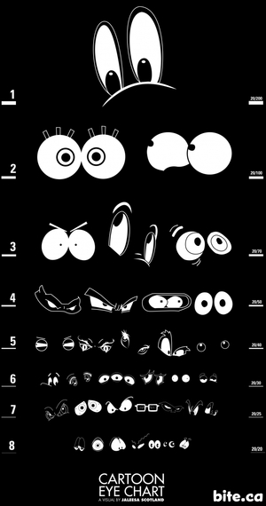 Cartoon Eye Test Niall Murphy at 10:00 am January 17, 2011 Solution here. bite.ca FacebookTwitterPinterestSponsored Link Related posts: Not A Palatino Or A Comic Sans Among Them Know Your Sci-Fi, Eh, Typography Zig And Zag Are Back Miniature Adventure Time