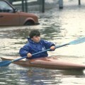Canoeing through a McDonald’s in the flooded Brisbane suburb of Milton.