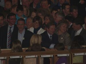 Enda Kenny at the count centre in the TF Royal Theatre, Castlebar, Mayo within the last hour. Hugh Laurie on left.