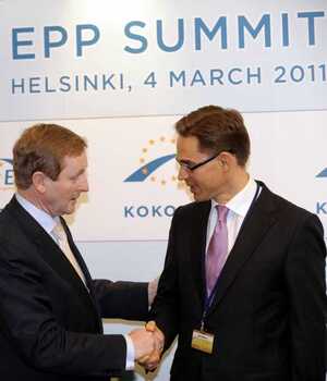 Taoiseach-elect Enda Kenny with Finland’s Finance Minister Jyrki Katainen, who is hosting a meeting of the conservative EPP group of the European Parliament. Which must be nice for him.