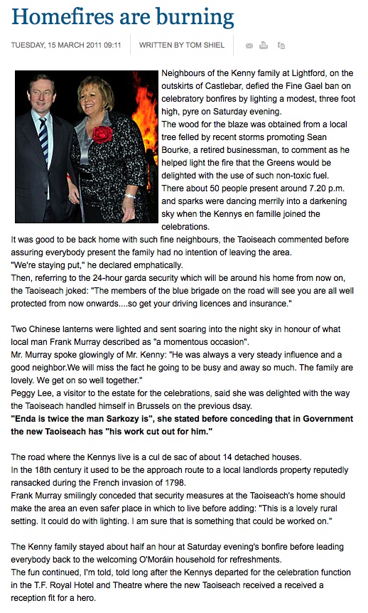 Mayo Lights Sneaky Three Feet High Bonfire For Dame Edna’s Homecoming Admin at 12:30 pm March 15, 2011 The Connaught Telegraph. A local paper for local people. Connuaght Telegraph FacebookTwitterPinterestSponsored Link