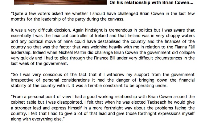 Lenihan: I Had To Lead When ‘Disappointing’ Cowen Didn’t (Irish Independent)