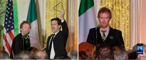 A somewhat tetchy Glen Hansard was the entertainment last night at the White House St Patrick’s party (Go to 3.00). Complaining about the sound quality, he interrupted his second song, The Parting Glass, by telling ushers to close the door as if it was Whelan’s on a Monday night.