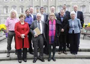 The 11 members of the ‘technical group’ of Independent TDs (from left, back row) Stephen Donnelly, John Halligan, Shane Ross, Thomas Pringle and Finian McGrath TD; (middle row, from left) Mick Wallace, Luke ‘Ming’ Flanagan, Richard Boyd Barrett and Maureen O’Sullivan, and (front row, from left) Catherine Murphy, Mattie McGrath TD and Icelandic MP Lilja Mosesdottir.