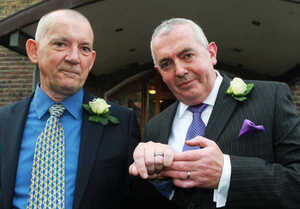 Thomas Cahalan (right) and Nicholas Nelson became the second gay couple to publicly avail of the new civil partnership legislation.