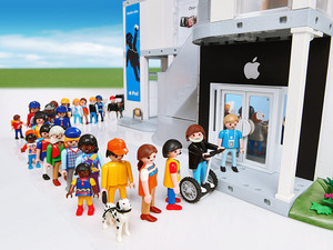 The Apple Store playset from Playmobile: including Keynote Theatre, a miniature Genius bar, tiny iPhones, iPads and a special add-on linepack including Steve Wozniak on a segway.