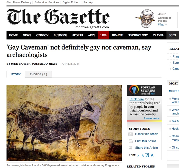 Gay Caveman not definitely gay nor caveman, say archaeologists (Montreal Gazette)