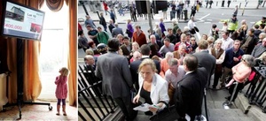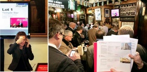 The Shelbourne Hotel today with, (fourth pic), auctioneer Gary Murphy of Allsop. Meanwhile, a live link (last pic) was beamed to Doheny and Nesbitt’s: intellectual birthplace of the Celtic Tiger.