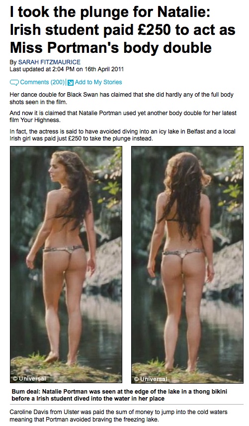 I Took The Plunge For Natalie: Irish Student Paid £250 To Act As Natalie Portman’s Double (Mail)