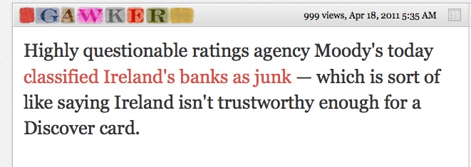They’re Laughing At Us Again Admin at 1:08 pm April 18, 2011 Moody’s Downgrade Ireland After Sovereign Cut (Reuters) FacebookTwitterPinterestSponsored Link