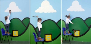 Eva McQuary, aged 3, reaches for the cloud but eventually throws down her paint brush in frustration. She’s more into cubism anyway.