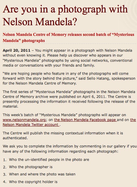 Might You Be In A Photo With Nelson Mandela Without Knowing It? Admin at 2:24 pm April 20, 2011 Rack your brains. Nelson Mandela Foundation FacebookTwitterPinterestSponsored Link