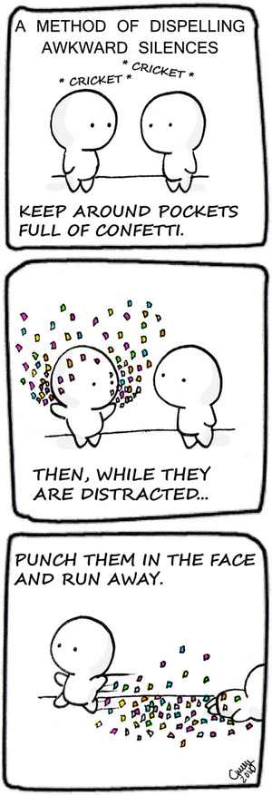 No More Awkward Silences Niall Murphy at 11:32 am April 20, 2011 Whoa Comics/via FacebookTwitterPinterestSponsored Link Related posts: School: Good Times Have You Sent Out Your Family Christmas Card Yet? High Five Fails Right Pairs