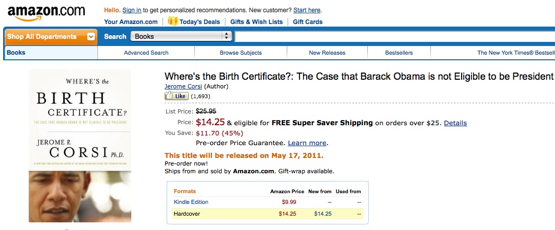 Where’s The Birth Certificate? By Jerome R. Corsi PHD (Amazon)