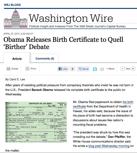 Obama Releases Birth Certificate To Quell ‘Birther’ Debate (Wall Street Journal)
