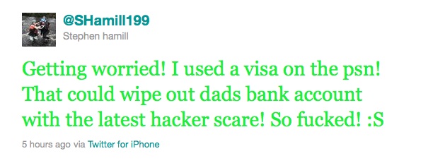 Celtic Tiger Cub’s Dismay At Playstation Hacking Admin at 3:32 pm April 27, 2011 AND, he’s doing the Leaving: Playstation Hacking: Will You Think Twice Before Sharing Data Online? (Guardian) The Playstation Hack Timeline (PC World) Stephen Hamill’s Twitter FacebookTwitterPinterestSponsored Link