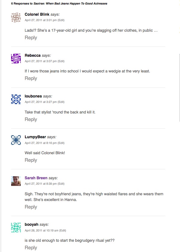 It was the Broadsheet ‘boyfriend jeans’ post that famously went too far yesterday, recording a stinging six comments which raised much-needed questions.