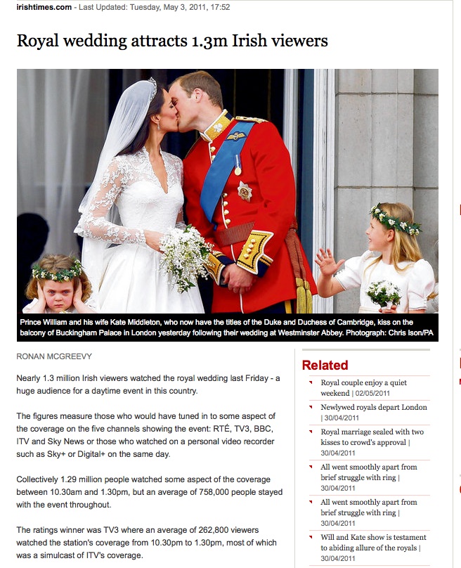 Royal Wedding Attracts 1.3 Million Viewers (Irish Times)