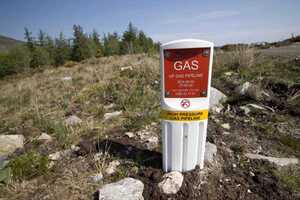 A sign for the location of a section of the Shell Corrib gas pipeline.