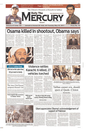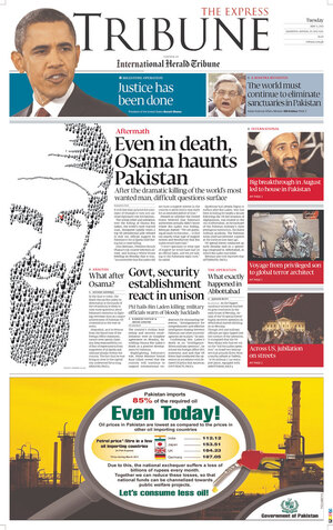 Today’s Pakistan Press Admin at 5:03 pm May 3, 2011 The Daily Mercury. Note ‘Obama says’ The Express-Tribune. Note ‘consume less oil’ ad. The Daily News Coverage: Note indecipherable yet beautiful script. FacebookTwitterPinterestSponsored Link