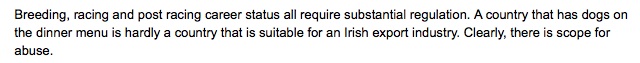Bord na gCon’s promise to open up an export market for Irish greyhounds to the People’s Republic of China prompted the following today from Labour’s front bencher Joe Costello