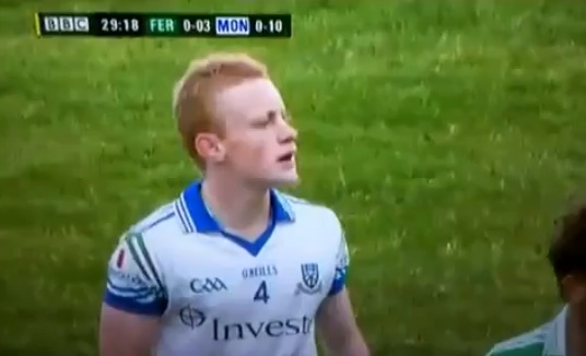 Monaghan footballer Dick Clerkin this morning uploaded a clip of teammate Colin Walshe narrowly avoiding decapitation in last season’s Ulster Championship match with Fermanagh. He’s literally rubber-necking.