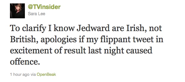 Fittingly, Sara works for the PR company that look after Jedward and Mary Byrne and Louis Walsh.