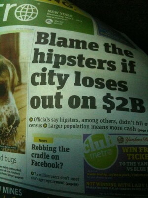 Hipsters to blame for billions of dollars in Census losses? (Metro NY)