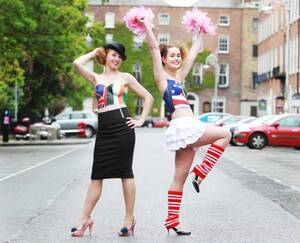 Dancers Nelly Devine (bowler hat) and ‘Rococo Belle’ celebrate the impending visits of Obama and Her Maj in colours provided by The International Make Up Acadamey.