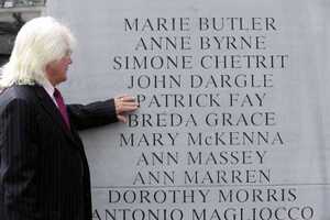 Pat Fay, son of Patrick Fay, who died in the Dublin/Monaghan bombings, at the monument (in Talbot Street, Dublin 1) to the 33 victims, this afternoon – the 37th anniversary of the bombing.