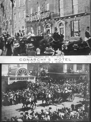 The Royal Procession reaches Rutland Square East (now Parnell Square) and Dame Street, July 1911.