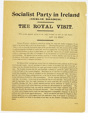 The Socialist Party is opposed to the visits to Ireland by Queen Elizabeth and Barack Obama. €25 million will be spent wining, dining and protecting the Queen and Obama in a vain attempt to try to rebuild Ireland’s damaged reputation. The reputation of the Irish state was of course destroyed by the actions of the Irish capitalist class whose greed, corruption and unquestioning faith in the market has bankrupted the country.