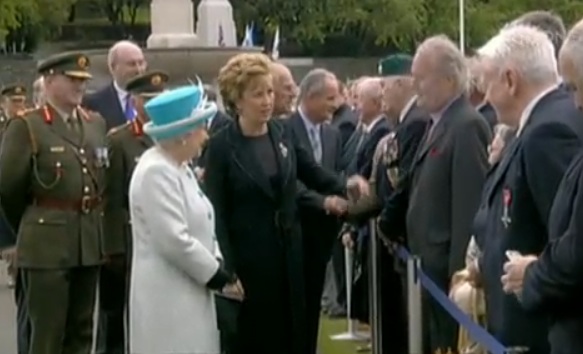 Maj Meets Myers! Admin at 12:40 pm May 18, 2011 After laying a poppy wreath at the war memorial at Islandbridge the Queen got to meet Kevin Myers. She forgot to curtsey. (RTE) FacebookTwitterPinterestSponsored Link