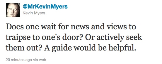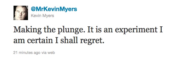 Either Twitter Has Jumped The Shark, Or This Is Something To Do With The Rapture, But Kevin Myers Is Now Tweeting Admin at 4:57 pm May 20, 2011 One didn’t fight in two world wars to have to travel the internet unaccompanied. Kevin Myers’ Twitter Thanks Bibi Baskin Robbins FacebookTwitterPinterestSponsored Link