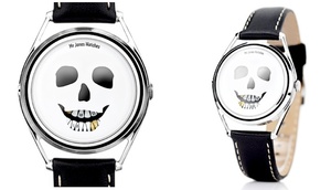 Designed with comedian, William Andrews, this watch forgoes the customary hour and minute hands. Instead, the time is displayed on a skull’s teeth. The eyes and nose are mirrored and the overall impression is of a gleefully absurd memento mori – an object intended to remind us that life is brief.