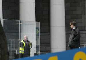 The two-inch thick bullet-proof glass screen that will surround Brian Cowen Obama tomorrow during his public speech outside the entrance of the Bank of Ireland at College Green.