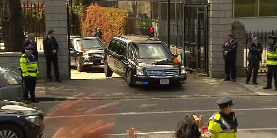 A new image and a new angle on Obama’s Beast coming unstuck at the American Embassy In Ballsbridge, Dublin 4, this afternoon.