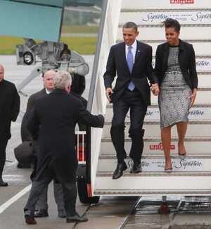 The Broadsheet fashion desk believes Mrs Obama’s outfit is by Mario Pinto even though Bodger insists it must be from an Irish designer. More as we get it.